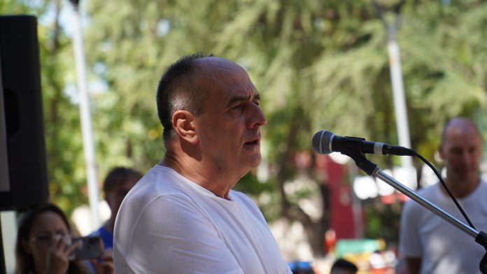 Vecinos participaron de un encuentro con el Secretario de Salud Pública, Walter Videtta, en la Plaza 25 de Mayo, frente al Hospital de Pontevedra, con el objetivo de organizar y reforzar la salud pública en el distrito.